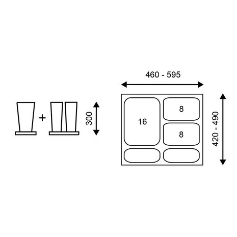 Inhoud afvalbak 1 x 16 liter + 2 x 8 liter