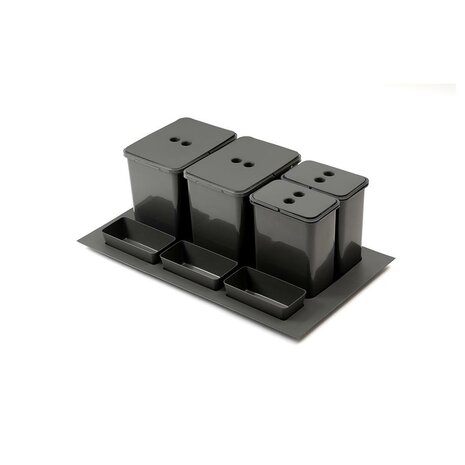 Ben je op zoek naar moderne afvalemmers die je kunt inbouwen in een keukenlade? Deze StrongBins inbouwprullenbakken kun je eenvoudig inbouwen in je keuken, waardoor je geen losse prullenbak in je keuken hoeft te plaatsen en je keuken er opgeruimd uitziet. Deze set bestaat uit twee containers van 16 liter, twee containers van 8 liter en drie kleine kommen. Hierdoor kun je eenvoudig je afval scheiden en dankzij de deksels zijn de afvalbakken netjes afgesloten, waardoor er minder snel geurtjes vrijkomen. Deze afvalemmers voor inbouw zijn gemaakt van duurzaam polypropyleenmateriaal, waardoor ze zeer goed bestand zijn tegen extreme temperaturen en lang meegaan.
