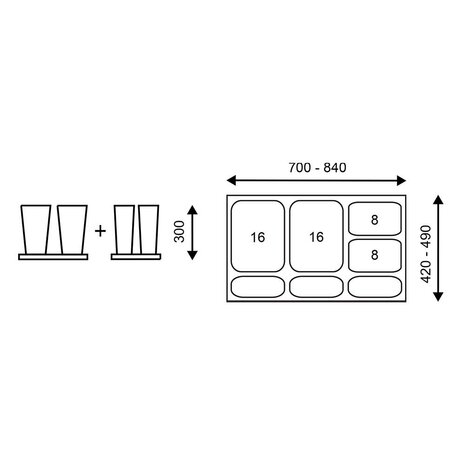 Inhoud afvalbak 2 x 16 liter + 2 x 8 liter
