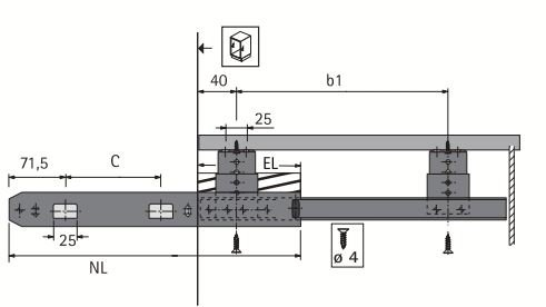 De Hettick KA 3434 ladegeleider is geschikt voor toetsenbordplateaus, schuiflades en uitschuifbare legplanken.