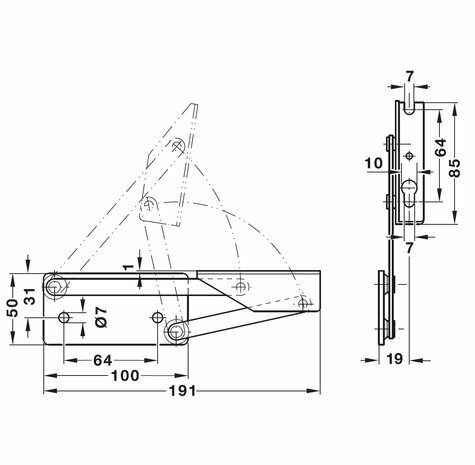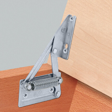 Het scharnier zorgt voor een stabiele beweging van de zitting, waardoor slijtage aan het meubel wordt beperkt. Dit is vooral belangrijk bij banken die regelmatig worden geopend, bijvoorbeeld voor het opbergen van kussens, dekens of andere spullen. De vaste openingshoek van 95° zorgt ervoor dat de zitting ver genoeg opent zonder dat deze te ver doorslaat. De montage is eenvoudig doordat dit scharnier direct de functie van het mechanisme overneemt en er geen extra onderdelen nodig zijn. Een praktische keuze wanneer je een bank wilt voorzien van een stabiel en betrouwbaar openingsmechanisme voor zwaardere zittingen.