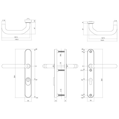 Intersteel veiligheidsbeslag skg3 - RVS - smal - profielcilindergat 92 mm - geveerd - ovaal achterdeurbeslag