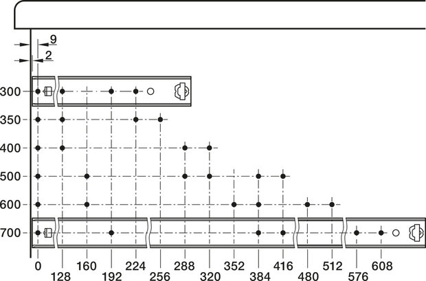 Gedeeltelijk uittrekbare ladegeleiders 700 mm