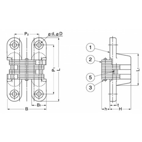 Onzichtbaar scharnier 180° - 43 mm