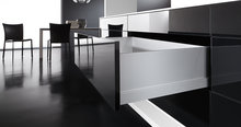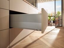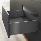 De Blum Legrabox lade is de nieuwste zelfbouwlade van Blum. Deze lade kenmerkt zicht door de strakke, rechte zijwanden. De vormgeving geeft de lade een moderne, tijdloze uitstraling. De Legrabox lade is net als de Tandembox lade standaard voorzien van een softclose functie voor het geruisloos sluiten van de lade. De Legrabox laden zijn leverbaar in vijf hoogtematen en vier kleuren. Wanneer je een binnenlade achter het front van een andere lade gaat plaatsen, kun je hiervoor een lade meenemer toevoegen aan de bestelling. Deze meenemer zal ervoor zorgen dat de binnenlade mee naar buiten schuift als de lade eronder open wordt getrokken. Voor de Legrabox lade heb je een 16 mm dikke bodem nodig. Ga je zelf een lade maken? Dan zul je de bodem en achterwand zelf moeten maken. Hiervoor wordt geen materiaal meegeleverd.