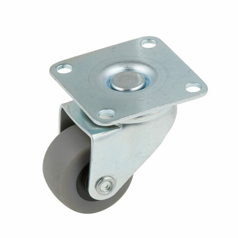 Dit zwenkwiel heeft een doorsnede van 30 mm en is gemaakt van sterk staal. Het grijze zwenkwiel kan tot 15 kg dragen. Dit betekent dat als je vier wielen onder een meubel plaatst, deze maximaal 60 kg mag wegen. Het zwenkwiel kan met schroeven aan het meubel worden bevestigd. De bevestigingsplaat is 42 bij 42 mm. Er zit geen remfunctie op dit zwenkwiel.